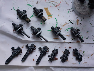 The arm weapons were a lot more fiddly. Yes, it's possible to drill out the shoulder joint and insert a tiny magnet, and I did it. Twelve times. Mostly during online meetings!